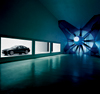 另一個只能藉由觀察而無法直接測量的現象,就是雨滴消散過程,但不論是煙霧或是絲線纖維,在這種現象下都無法發揮作用,只能以紫外線反射水滴加以識別。因此,四具裝置於受測車輛前方的噴嘴,將「螢光雨」噴灑入黑暗的測量空間,在紫外線的照耀下水滴會依氣流的流動而顯現出神秘藍光;這整個測試過程,將透過不同角度的攝影機忠實記錄下來。因此這樣的測試方法,可用來協助空氣動力學專家進行例如車外後視鏡的設計研究,以找出將雨水導出車窗,而不致於影響行車視線的最佳設計。
